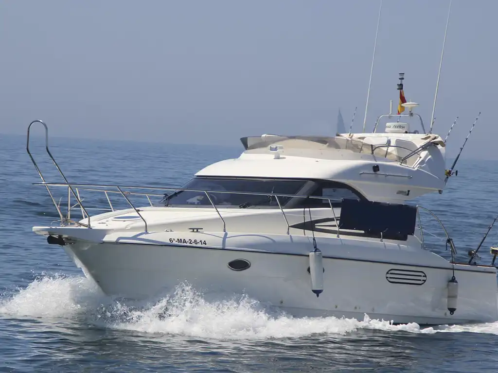 Este yate tiene capacidad para grupos de hasta 9 personas y se alquila con patrón en Puerto Banús. Este barco también se encuentra disponible para actividades de pesca. Se trata de un barco bastante grande y espacioso, perfecto para celebraciones privadas o dar un paseo por la bonita costa de Marbella.