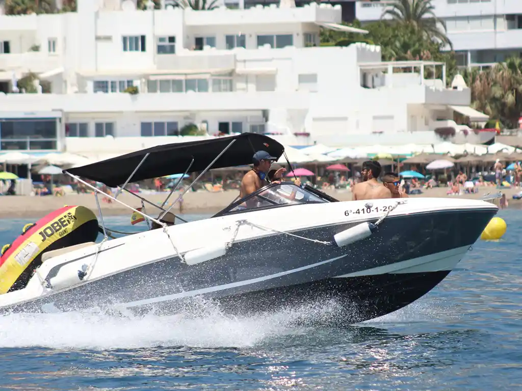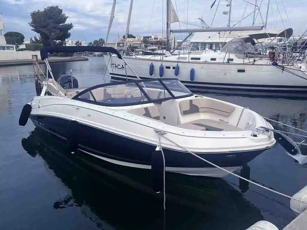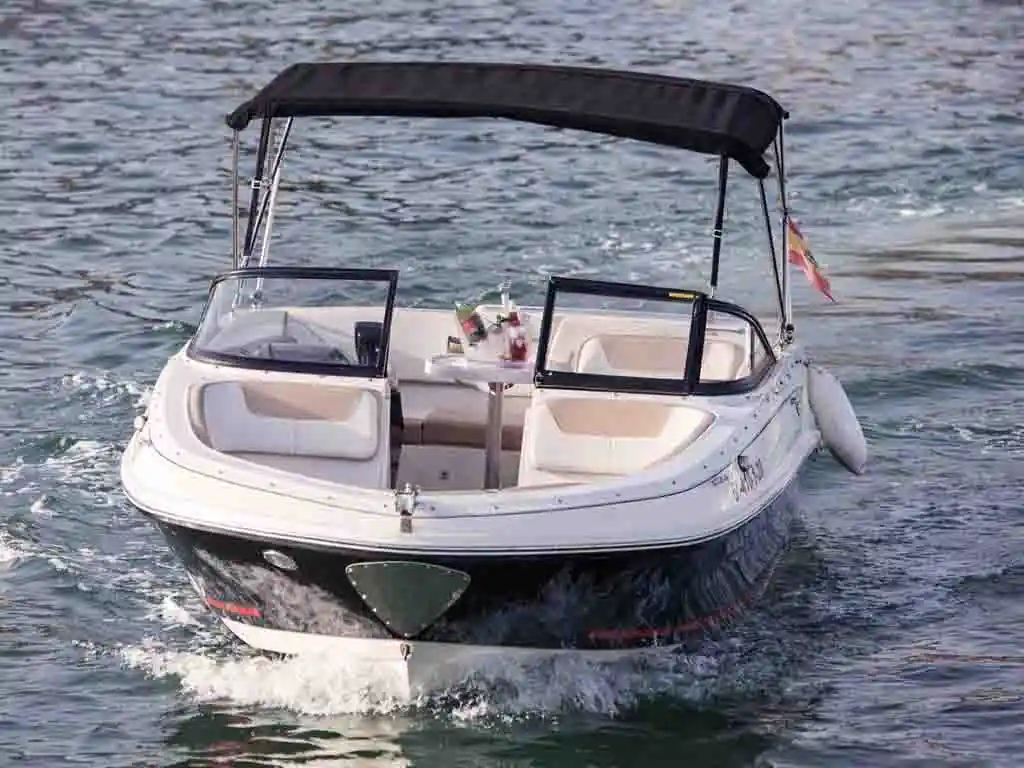 La Bayliner VR5 ofrece espacio para 8 pasajeros, brindando comodidad y estilo. Su consola central y amplio solárium en proa invitan al descanso bajo el sol. El casco en V garantiza una navegación suave, mientras que su diseño es perfecto para practicar deportes náuticos con amigos y familiares.