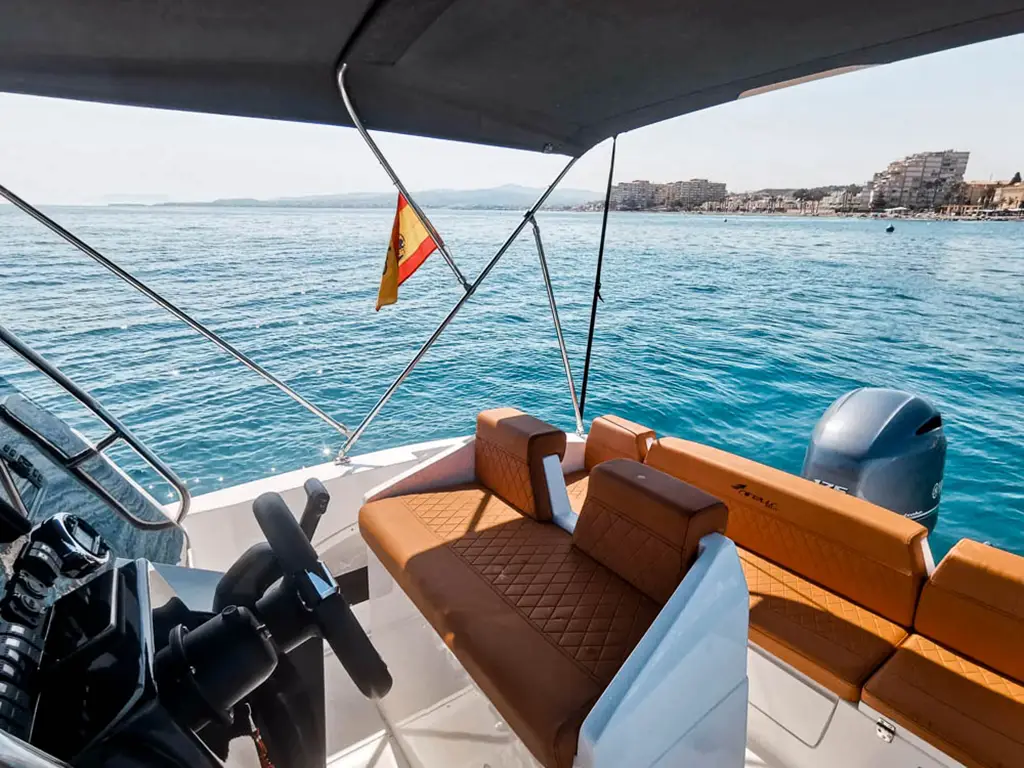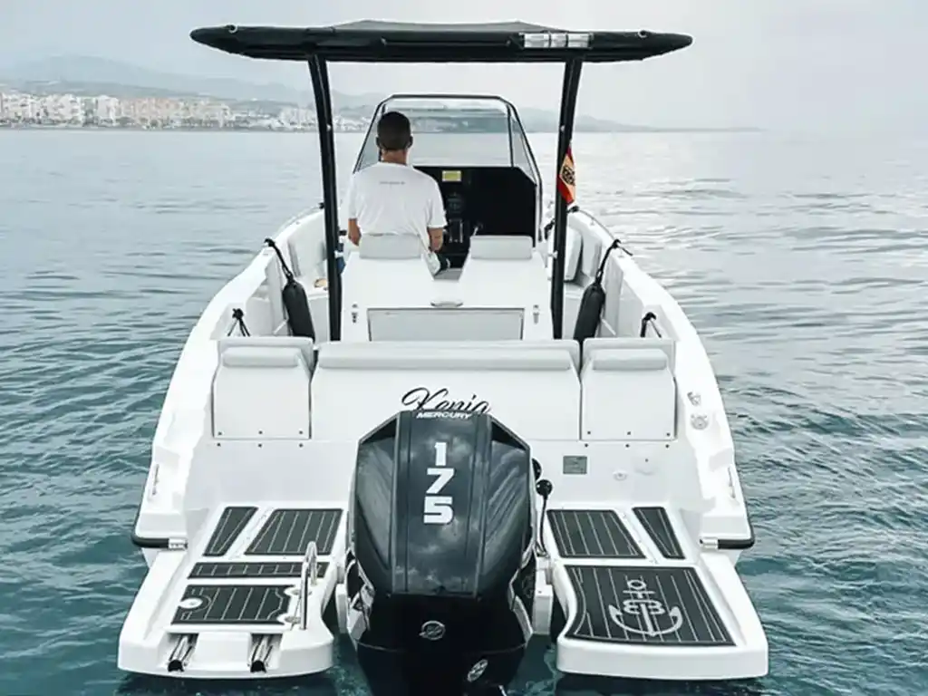 Además, al ser un barco Open habilita mucho espacio interior tanto en la proa como en la popa. Otra de las grandes ventajas de estealquiler de barcos en Almuñecar es que tiene motor fueraborda Yamaha F150 con un consumo medio de 10 litros. Esta característica la convierte en una embarcación de chárter ideal para aquellos clientes poco acostumbrados a navegar. Comodo, ágil, deportivo y con un consumo muy bajo.