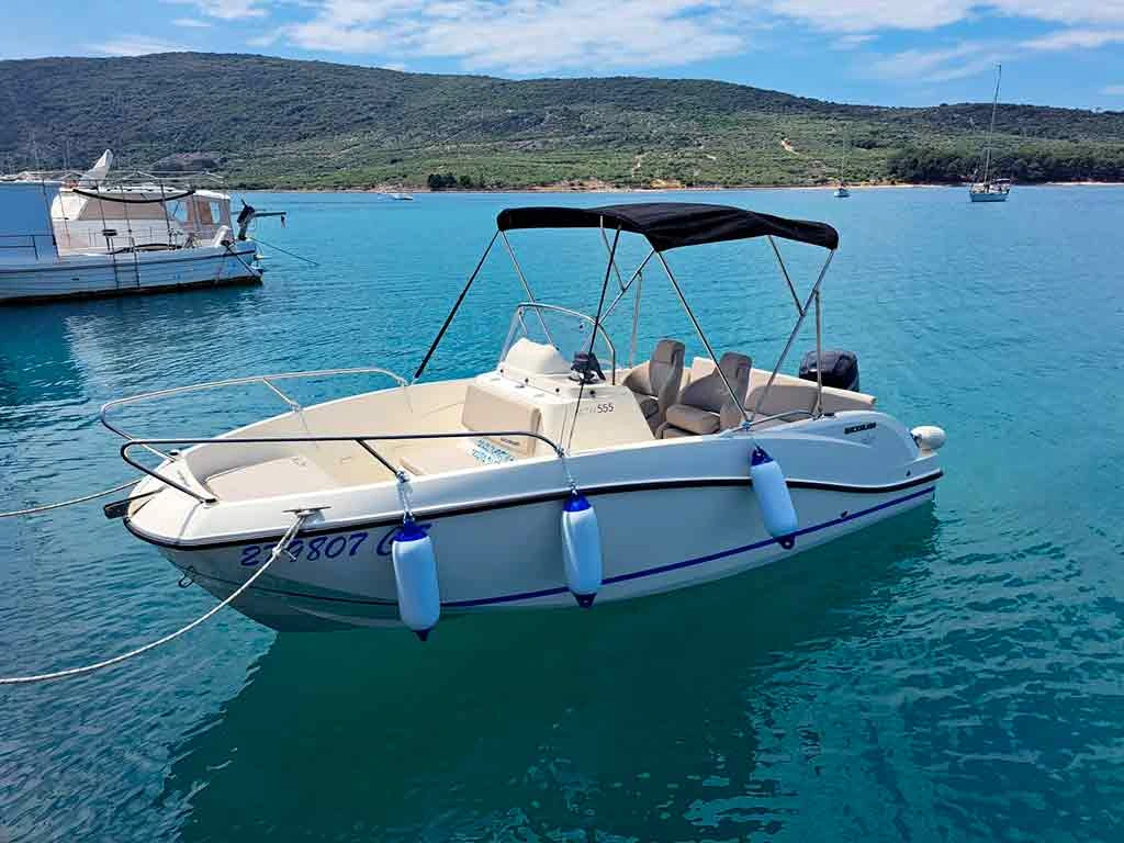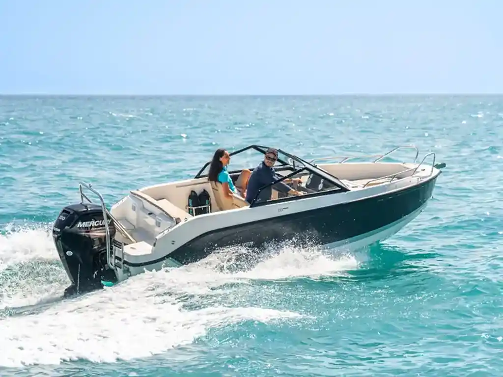 Otra de las grandes ventajas de este barco amotor es que tiene motor fueraborda. Esta característica la convierte en una embarcación de chárter ideal para aquellos clientes poco acostumbrados a navegar. El motor tiene un consumo muy bajo.