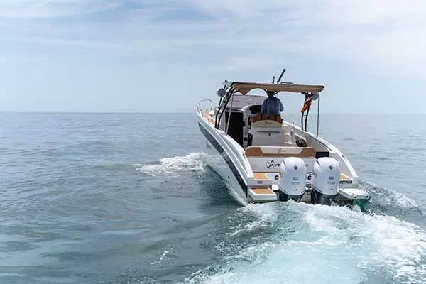 Potenciado por dos motores de 200 CV (400 CV en total), el Saver 870 WA te garantiza una navegación potente, estable y segura, con todo el confort del mejor diseño náutico italiano.