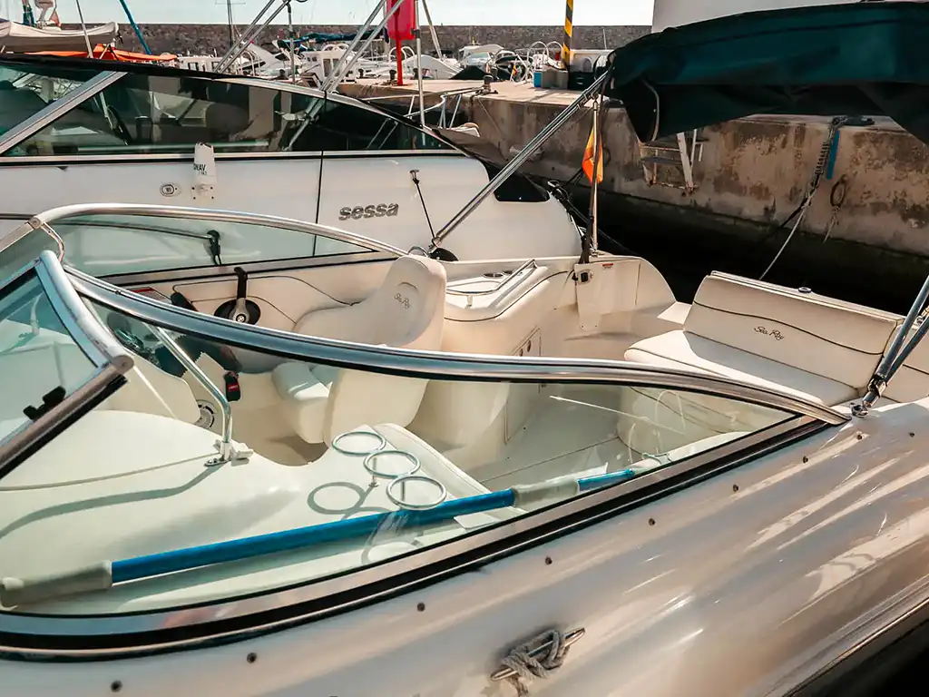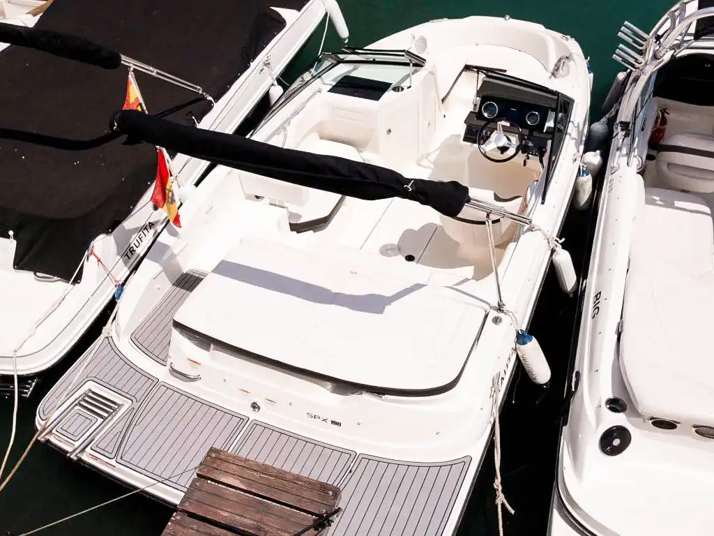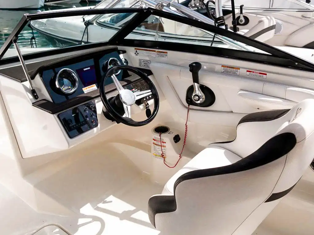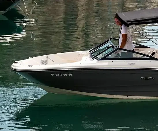 Esta embarcación está diseñada para los amantes de los deportes acuáticos. Su motor de 200 HP permite realizar diversas actividades náuticas, mientras que el toldo bimini ofrece sombra y confort. Equipada con ducha trasera de agua dulce, asiento del conductor giratorio y equipo de música premium, garantiza una experiencia completa en el agua.