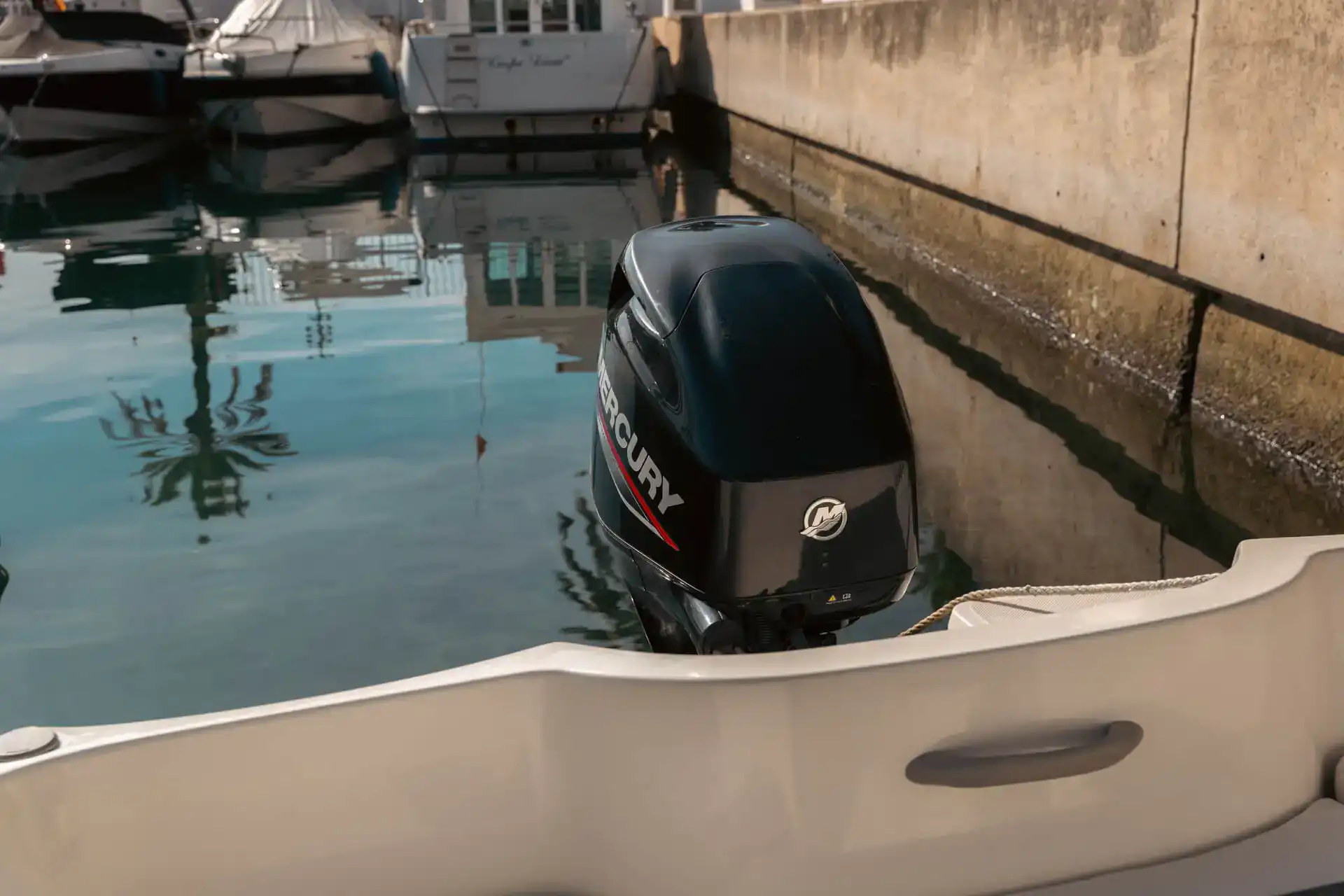 Esta potente lancha Bayliner E6 con 115CV, es uno de los barcos a motor para alquilar con licencia de navegación disponibles en Málaga. Tiene capacidad para 7 personas + patrón.