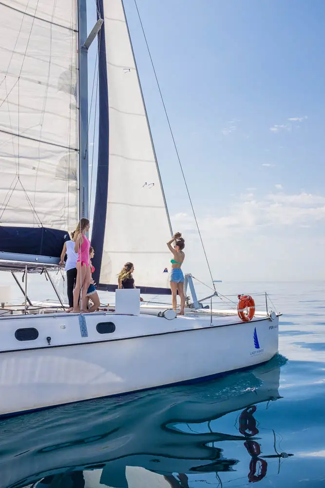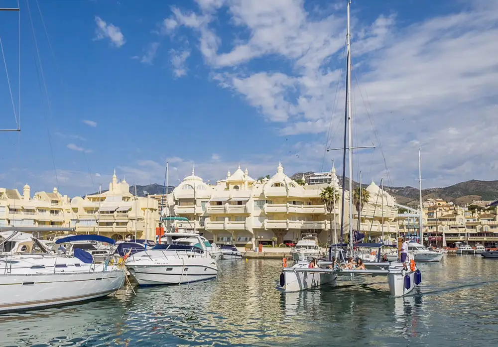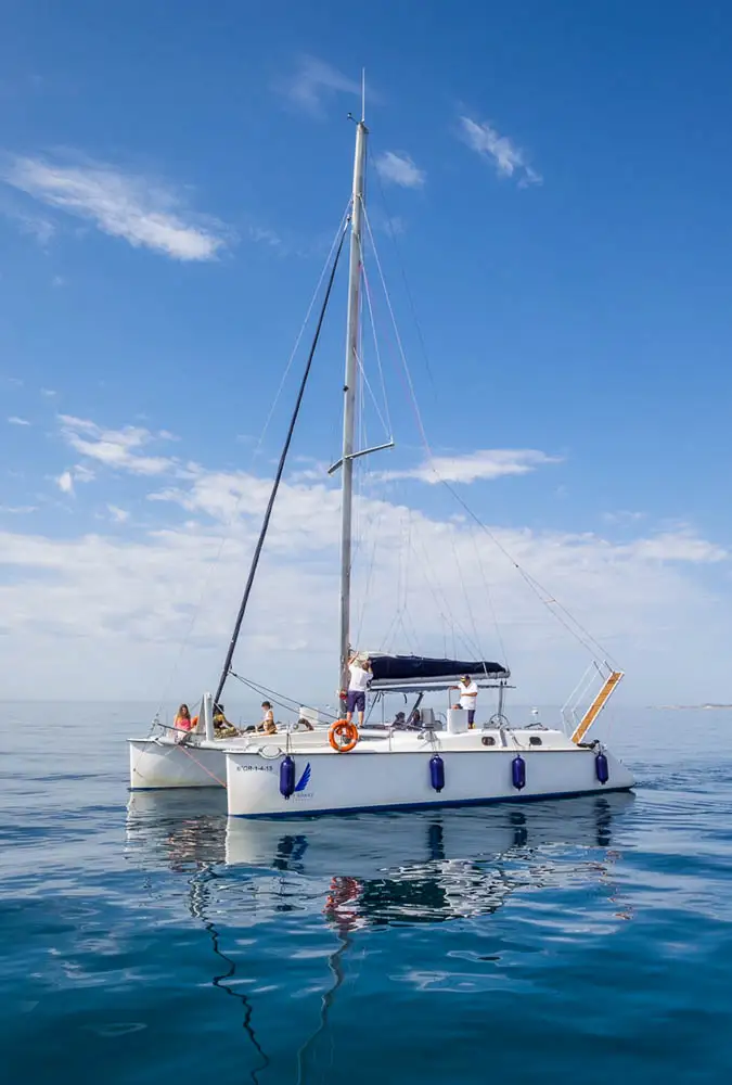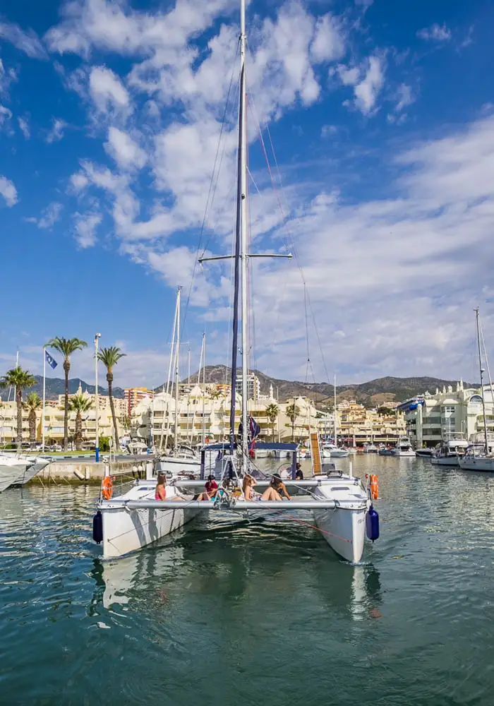 Este espacioso catamarán se encuentra en el puerto deportivo de Benalmádena y tiene capacidad máxima para grupos de hasta 12 pasajeros. Cuenta con todas las comodidades para pasar un estupendo día de sol y mar, tiene altavoces exteriores que se pueden conectar por bluetooth, zona de sombra en la popa, y zona de colchonetas para tomar el sol en la proa, neveras, baño, étc.