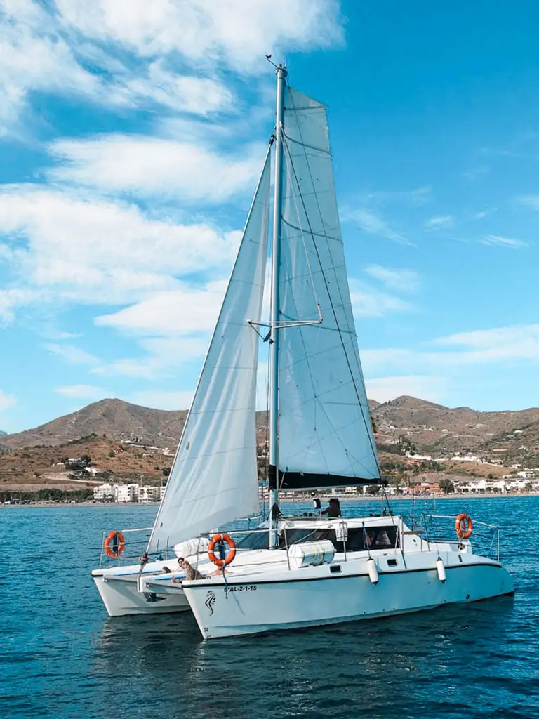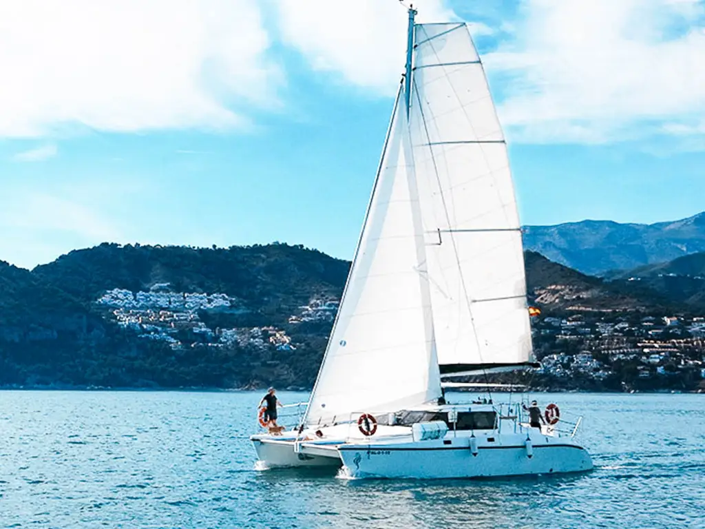 Este gran catamarán con capacidad para hasta 30 pasajeros se encuentra ubicado en el puerto de Caleta de Vélez, muy cercano a Nerja y al Parque Natural de los Acantilados de Maro.
