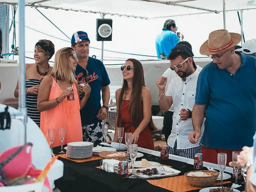 Este gran catamarán es perfecto para grandes grupos, como celebraciones familiares, despedidas de soltera/o, cumpleaños o incluso team buildings para empresas. Además de su gran espacio, este catamarán cuenta con una gran cocina equipada en la que se pueden preparar menús para catering a bordo.