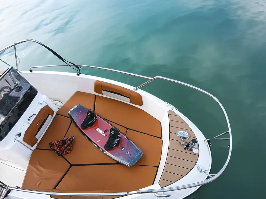 Se permite subir comida y bebida a bordo, y el barco tiene toldo bimini para la sombra, colchonetas para sentarse y tumbarse en la proa abierta, tambuchos para guardar enseres, altavoces conectados a radio bluetooth, nevera de hielos, étc