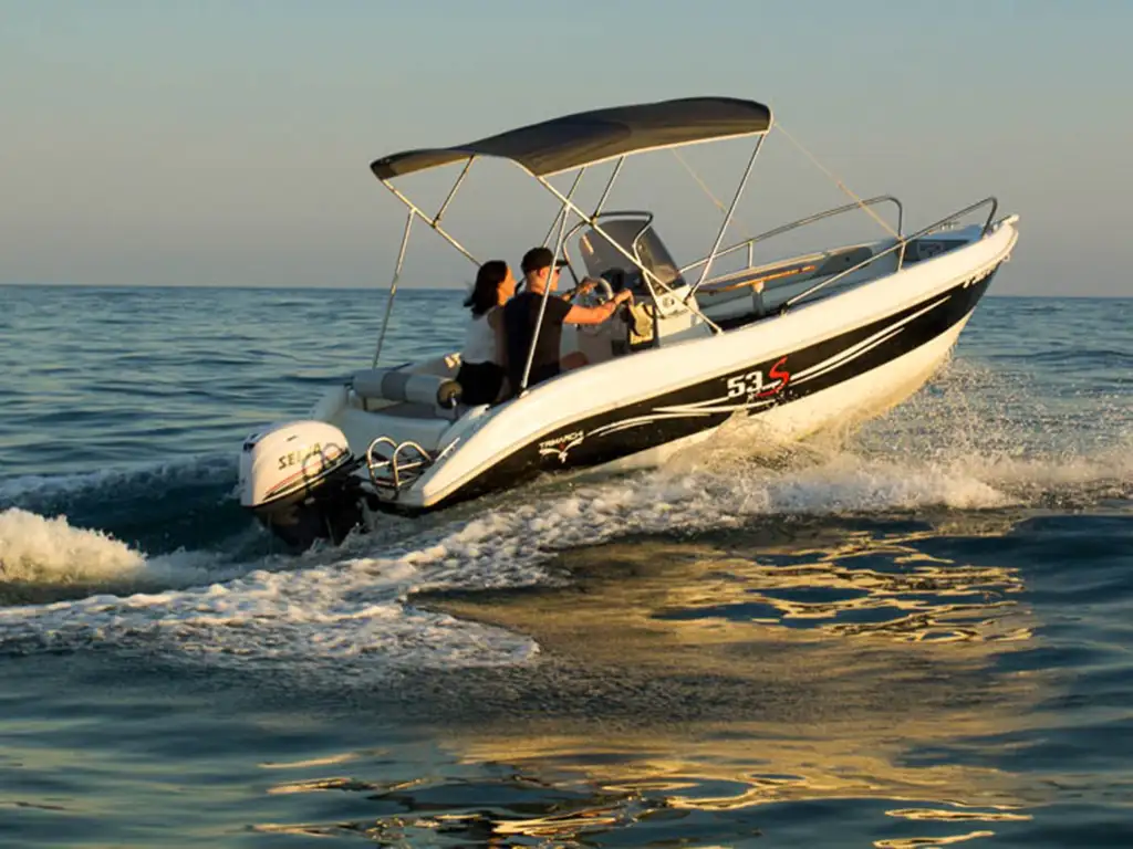 El barco sin licencia Trimarchi S53 es un barco muy solicitado, que se puede conducir sin necesidad de licencia. Con un motor de 15 CV y espacio para hasta 6 personas, es ideal para quienes quieren disfrutar del mar de forma sencilla, segura y divertida.