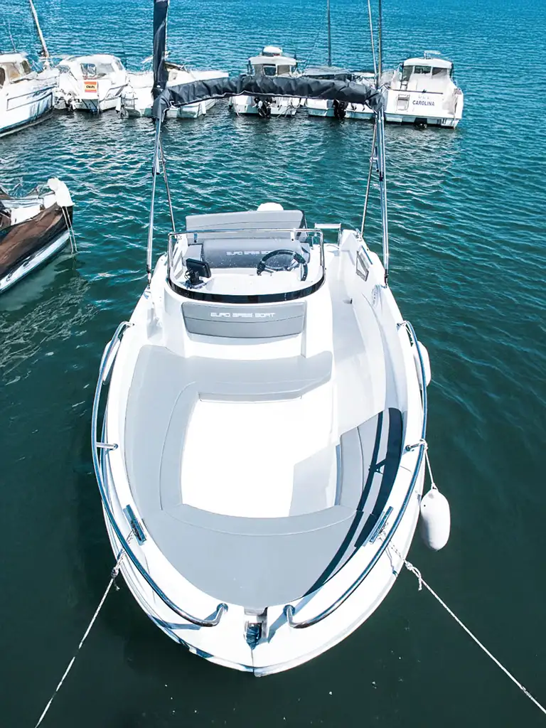 Este barco es un Euro Bass Boat 500, y se encuentra en el puerto de Benalmádena. Tiene 15cv de motor y capacidad para hasta 6 personas.