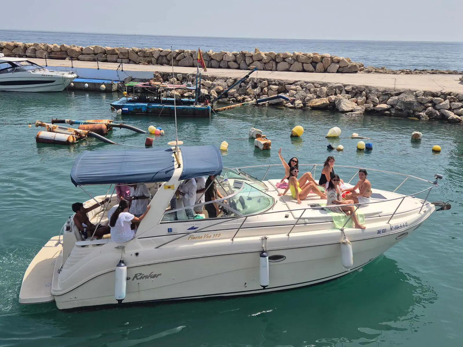 Este barco solo se alquila con patrón en Málaga capital. Este barco a motor es un modelo Rinker 310 Fiesta, es una motora de 10 metros, tiene capacidad para hasta 11 personas en total y se encuentra atracada en el puerto del Candado. Dispone de todas las comodidades de los barcos de recreo (nevera, baños eléctricos, ducha de agua dulce en el exterior, toldo bimini, colchonetas en la proa para tomar el sol, étc).