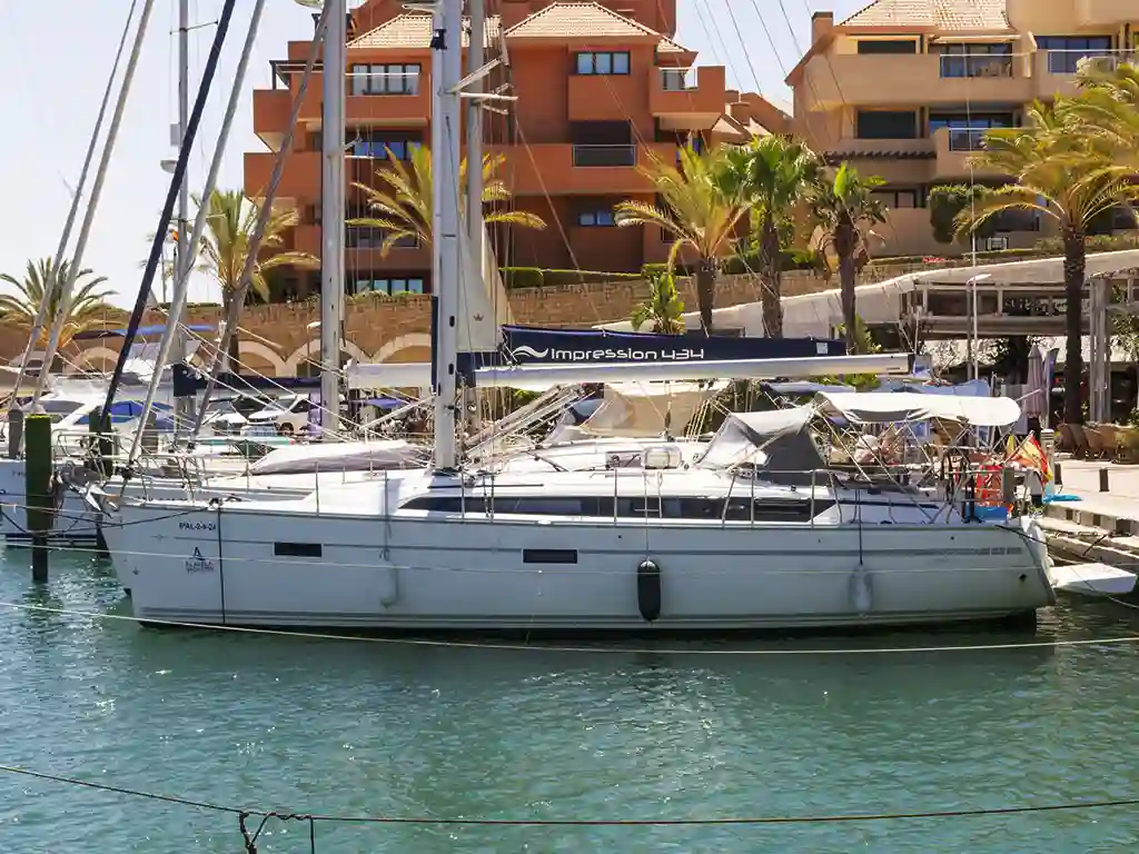 Este velero Bavaria 37 Cruiser se encuentra en el puerto deportivo de Sotogrande, en el límite de las provincias de Cádiz y Málaga..