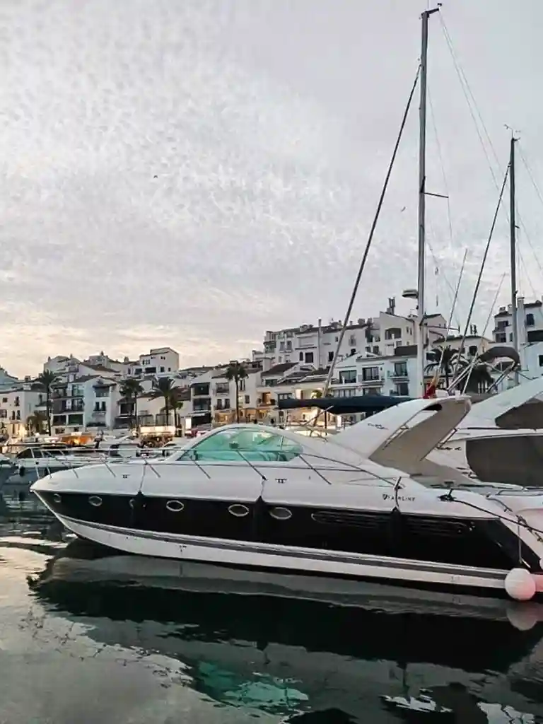 Disfruta de este yate de alquiler con patrón en el puerto de Puerto Banús, Marbella.