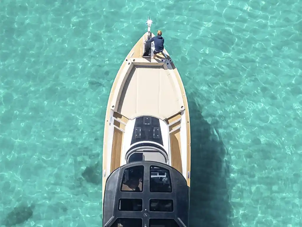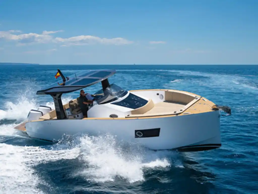 Tiene una capacidad máxima para hasta 10 personas + tripulación, y tiene dos potentes motores fueraborda de 350 caballos cada uno.