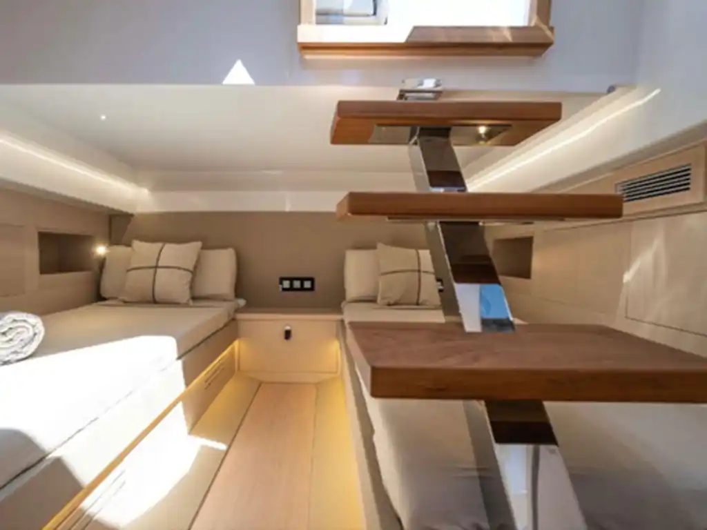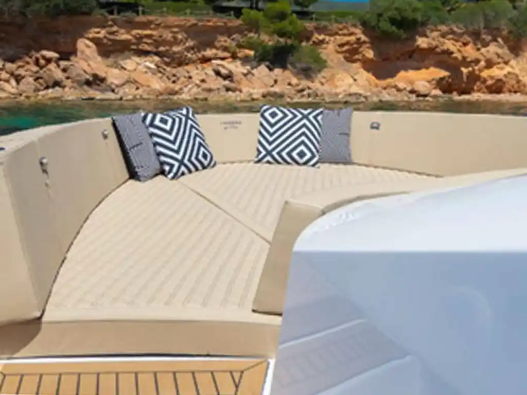 Cuenta con un gran espacio en la proa con amplias colchonetas para tumbarse, una amplia zona de sombra en el cockpit y también un par de colchonetas en la popa para disfrutar del máximo confort.