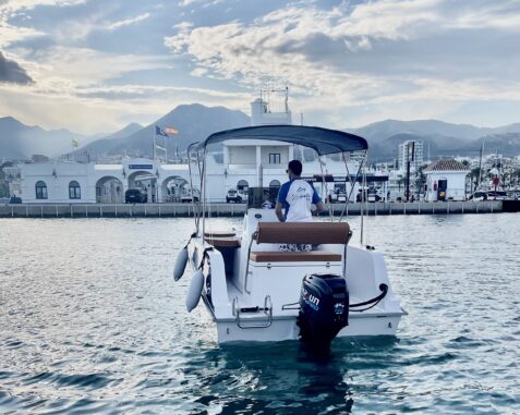 Si no tienes carnet náutico, ¡no te preocupes! Disponemos de lanchas seguras y fáciles de conducir. Te daremos una breve formación antes de salir para que disfrutes de alquilar un barco en Benalmádena con total seguridad y confianza.