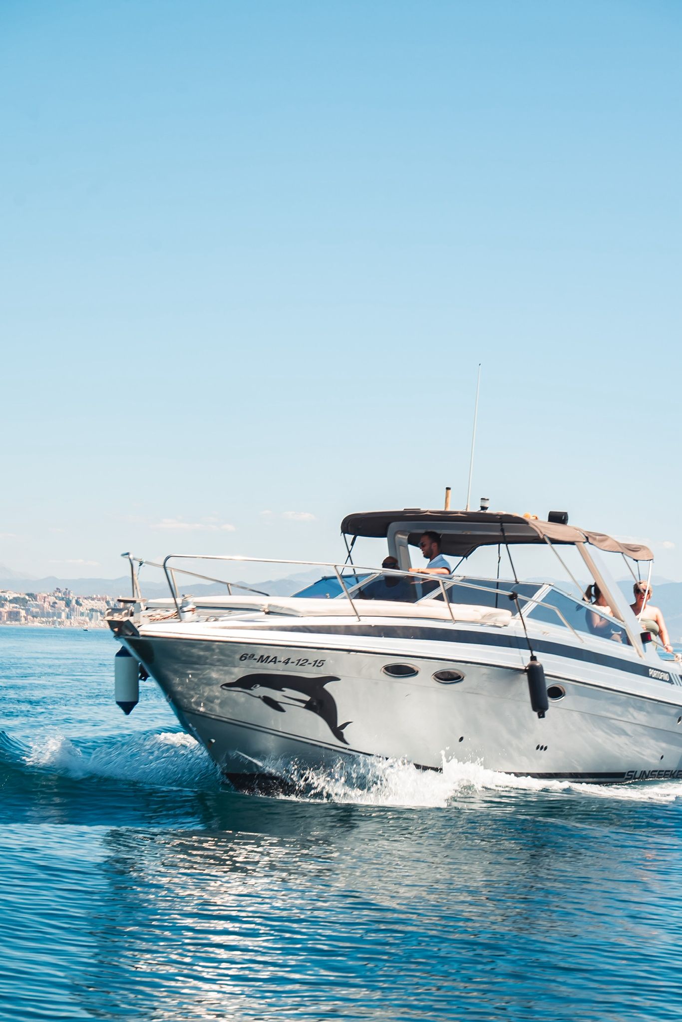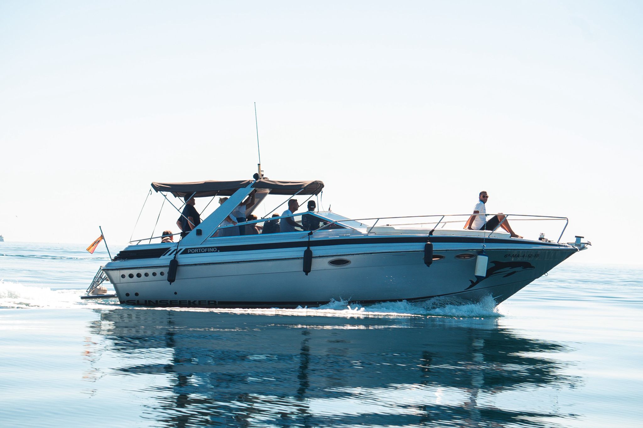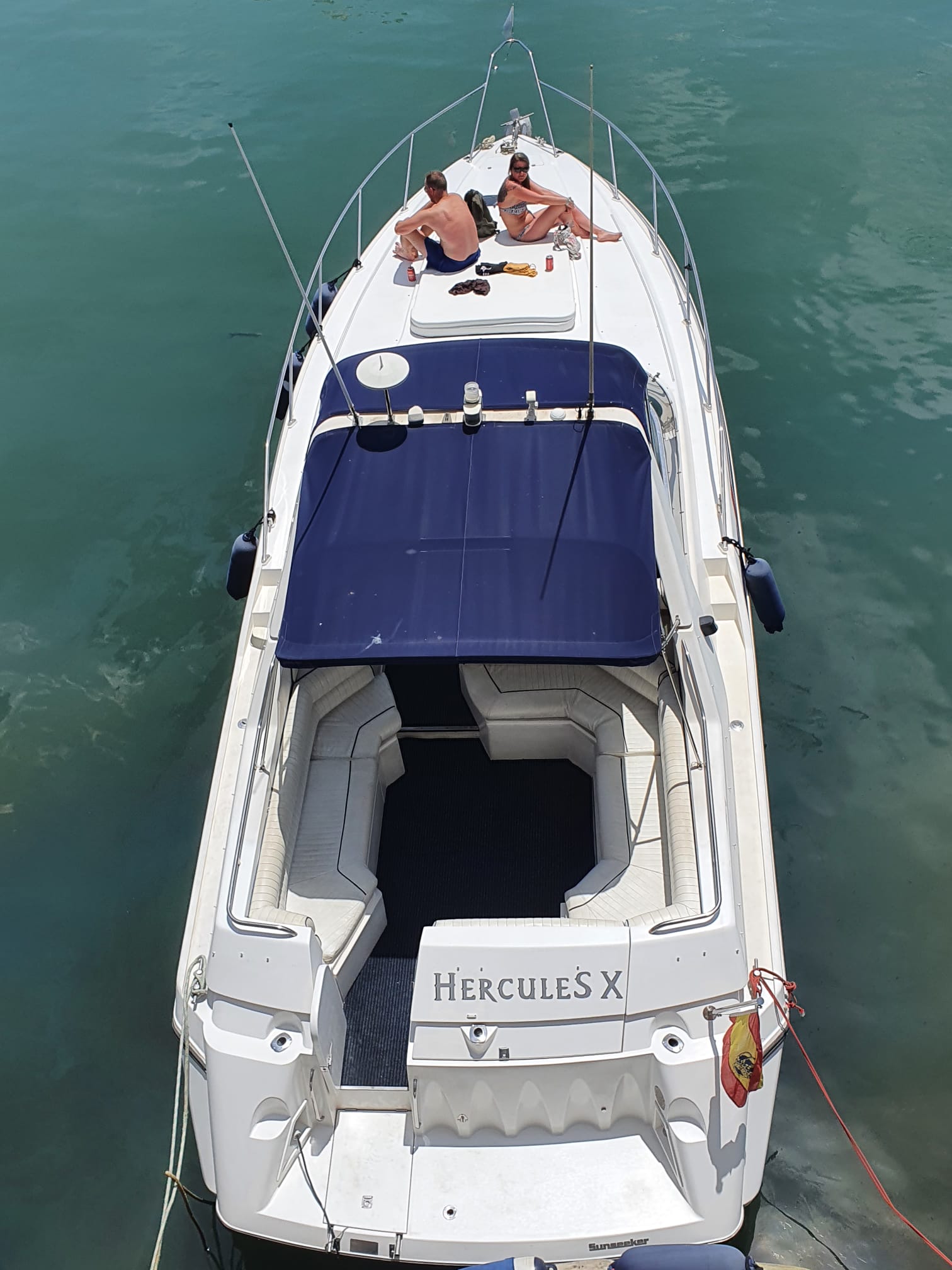 Este espacioso y potente barco a motor es barco modelo Sunseeker portofino 31, y cuenta con todas las comodidades de los barcos de alquiler (baño eléctrico, nevera eléctrica, toldo bimini en la popa para la sombra, colchonetas en proa para tomar el sol, plataforma de baño, étc).