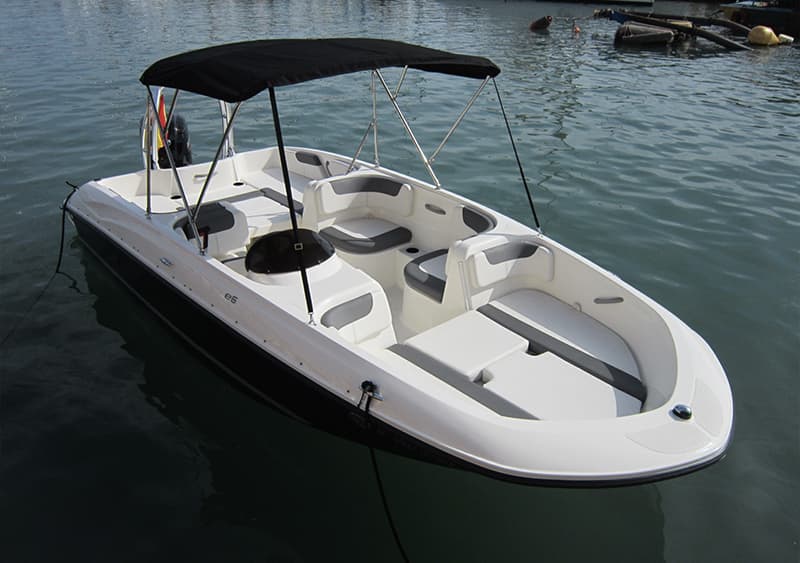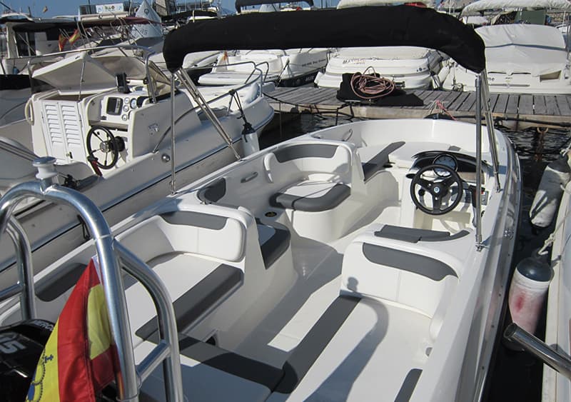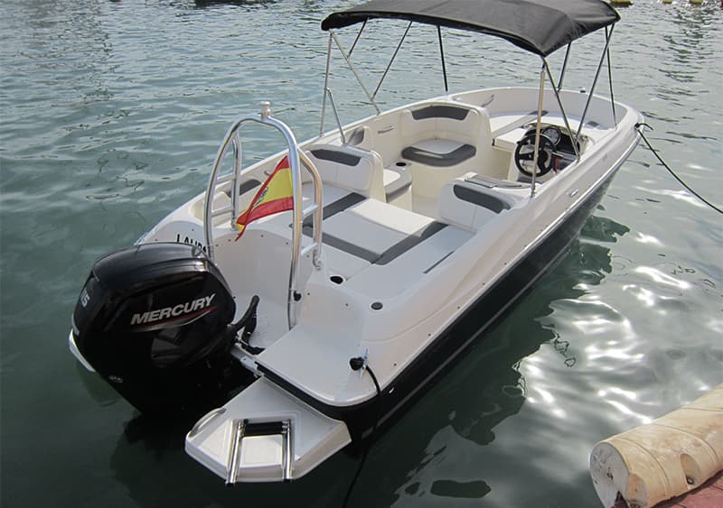 Esta potente lancha Bayliner E6 con 115CV, es uno de los barcos a motor para alquilar con licencia de navegación disponibles en Málaga. Tiene capacidad para 7 personas + patrón.