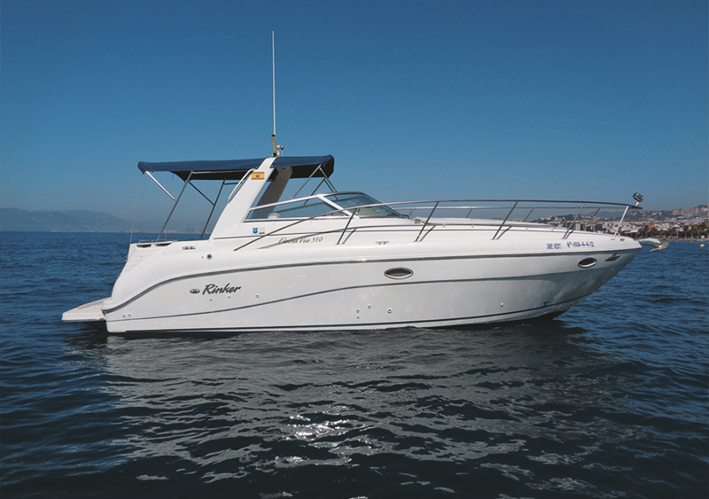 Este barco solo se alquila con patrón en Málaga capital. Este barco a motor es un modelo Rinker 310 Fiesta, es una motora de 10 metros, tiene capacidad para hasta 11 personas en total y se encuentra atracada en el puerto del Candado. Dispone de todas las comodidades de los barcos de recreo (nevera, baños eléctricos, ducha de agua dulce en el exterior, toldo bimini, colchonetas en la proa para tomar el sol, étc).