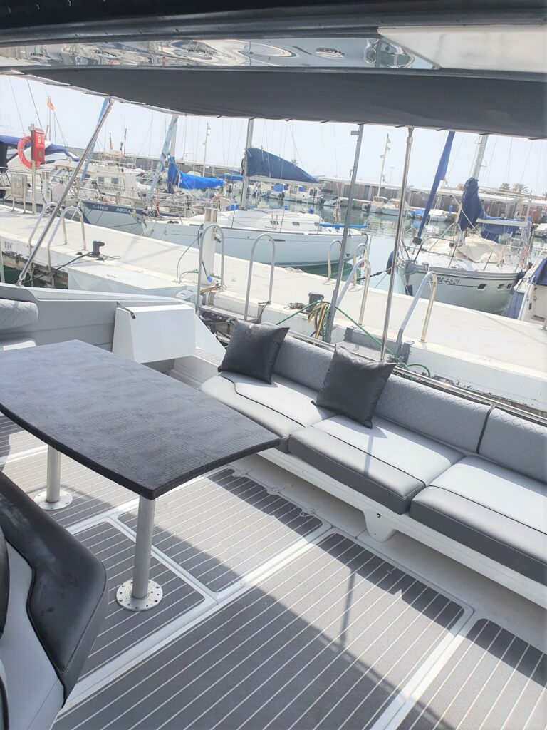 Este barco dispone de dos camarotes dobles, un baño y un salón con sofás y altamente equipado para que tengas todas las comodidades.